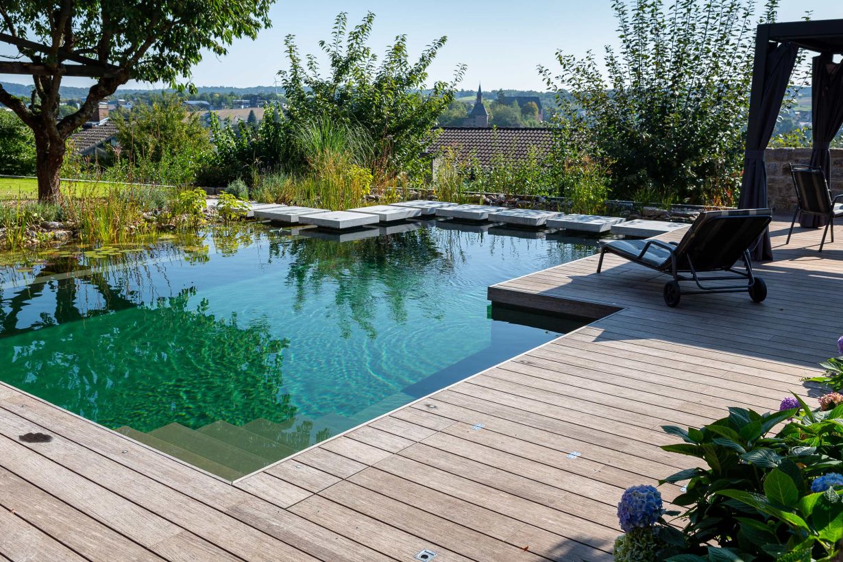 Ein Schwimmteich (auch Badeteich genannt) verbindet das Beste von Biotop und Schwimmbad für ein naturnahes Badeerlebnis. Anders als beim klassischen Pool bildet der Schwimmteich jedoch das ganze Jahr über den wunderschönen und lebendigen Mittelpunkt Ihres Gartens, der zu jeder Jahreszeit seinen speziellen Charme hat.
